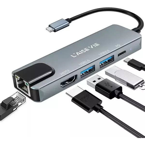 * Conecta múltiples dispositivos simultáneamente: Amplía las capacidades de tu dispositivo USB-C con 5 puertos USB adicionales, lo que te permite conectar varios periféricos como discos duros, memorias USB y dispositivos de entrada.