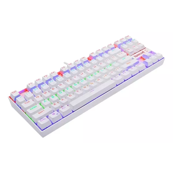 MARCA: Redragon MODELO: KUMARA RAINBOW UN TKL MUY FUERTE Un best-seller aclamado, y con razón. El Kumara es un teclado mecánico TKL (sin pad numérico); compacto, pero ampliamente funcional. Y fuerte —muy fuerte—, gracias a que su estructura está reforzada con acero. Es virtualmente irrompible y tiene una durabilidad extraordinaria. Todos sus componentes están diseñados para soportar las exigencias del juego competitivo de alta intensidad. Está preparado para resistir, además, derrames y salpicaduras, gracias a su sistema de drenando y sus switches tipo box. TECLAS DE DOBLE INYECCIÓN La doble inyección es un sistema de construcción de teclas a partir de dos bloques independientes que encastran a la perfección. Las teclas así construidas son más robustas y no se borronean ni se desgastan con el uso. FUNCIONES MULTIMEDIA A TRAVÉS DE TECLA FN Acceso sencillo, a través de una simple combinación de teclas, a todas las funciones multimedia y de navegación de uso cotidiano, como los comandos de reproducir/pausar un video, o volver al inicio en una página web. SWITCHES REDRAGON RED * Su diseño tipo box los hace resistentes a las salpicaduras y el ingreso de polvo. * Además, si prefieres un cambio, el sistema está diseñado para el “hot swap” o cambio rápido de switches. ESPECIFICACIONES TÉCNICAS TIPO DE TECLADO: mecánico. TIPO DE SWITCHES: Redragon Blue o Red, de acuerdo disponibilidad del distribuidor. TECLAS MULTIMEDIA: sí, a través de tecla FN. TECLAS MACRO DEDICADAS: no. BLOQUEO DE TECLA WINDOWS: sí. TAMAÑO: tenkeyless (sin pad numérico). REPOSAMUÑECAS: no. RETROILUMINADO: sí. Iluminación Rainbow. CABLE: Goma, reforzado. Soporta 12 kg y 10000 flexiones. USB enchapado en oro y filtro anti interferencias. MATRIZ: 100% anti-ghosting con full key rollover. CONSTRUCCIÓN: plástico ABS reforzado y placa de acero. ANTI SALPICADURAS: sí. DISTRIBUCIÓN: español (Latinoamérica). PESO: 1,06 kg. DIMENSIONES: 37,5 x 15,5 x 4,3 cm.