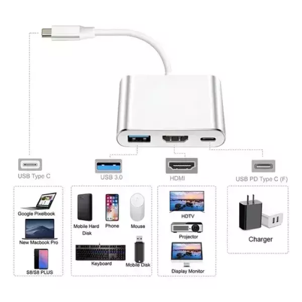ADAPTADOR HUB USB TIPO C A USB 3.0 - HDMI - USB C