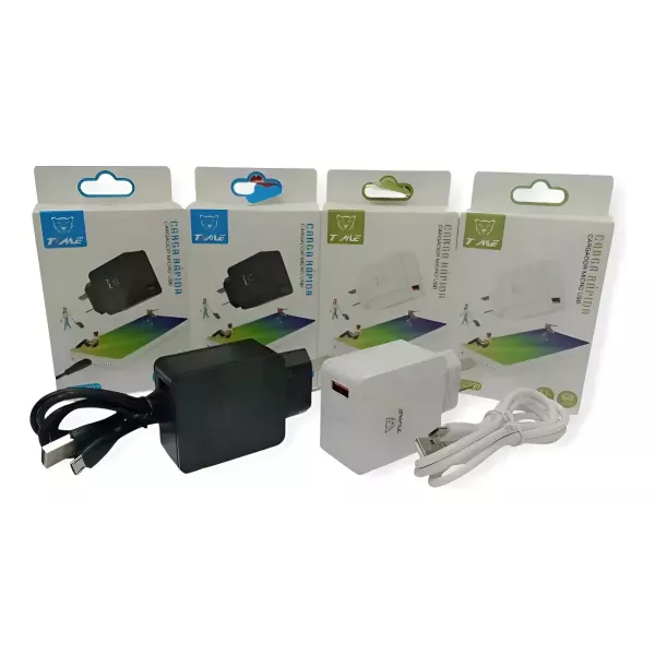 Cargador V8 3.1A TIME con Cable negro/blanco